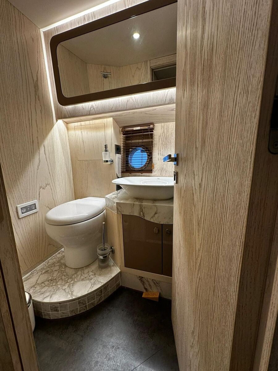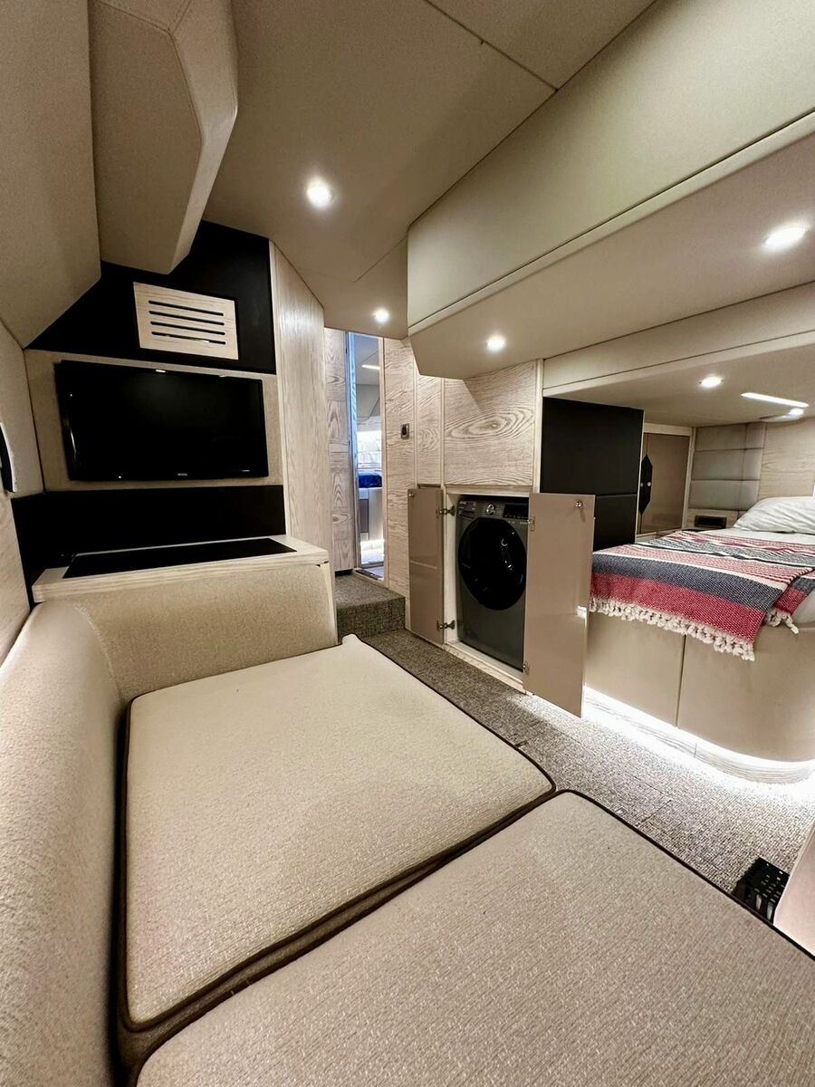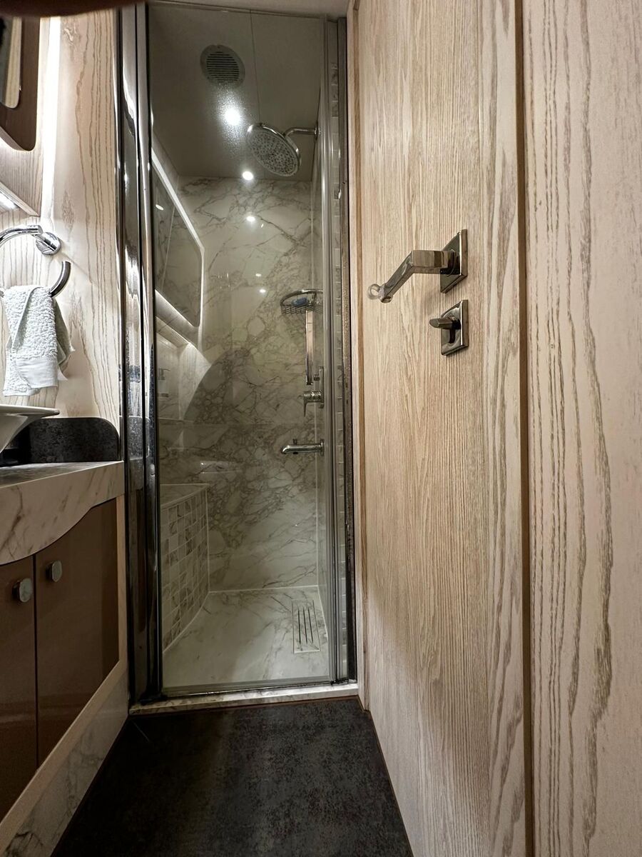 Aire acondicionado tipo chiller en todo el barco, generador Onan 11 kW, baterías de litio nuevas 600 Ah, paneles solares 650 W, desalinizadora 180 L/h, hélices de proa y popa, electrónica Raymarine de última generación (GPS / radar), teca completa, pasarela hidráulica, cocina totalmente equipada, lavavajillas, lavadora 10 kg, sistema de audio Hertz, cámaras con visión nocturna.