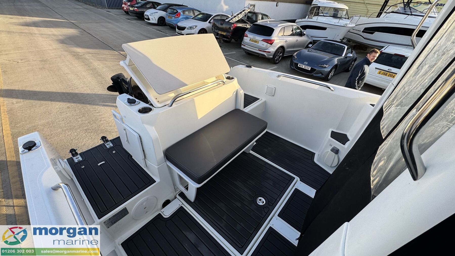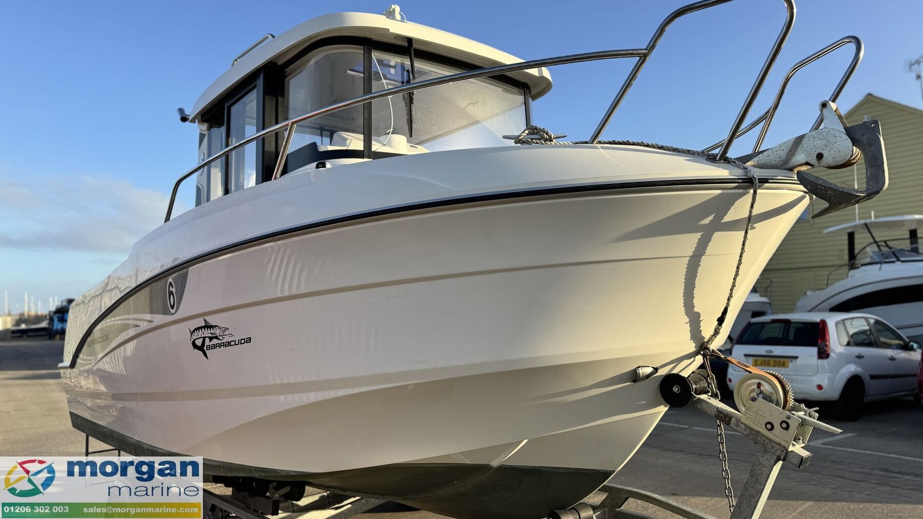 2018 Beneteau Barracuda 6 has just arrived at Morgan Marine, equipped with a Suzuki DF115 offering outstanding performance of close to 30 knots while remaining very fuel efficient. Benefitted by low hours of approximately 279 and backed by a solid service history. This versatile Barracuda 6 is an ideal entry into coastal cruising or some offshore fishing while doubling as a comfortable family day cruiser. Its safe walkaround side decks, generous aft cockpit, and wheelhouse seating for four create a secure and social space on the water. Inside, a convertible berth adds surprising practicality, making this boat ready for anything from relaxed family sightseeing trips to fun days fishing with the kids. This model is further enhanced by a 2024 SBS 1900 R2 roller trailer, perfect for use with Morgan Marine’s park-and-ride services. Get in touch with us today to arrange an early viewing.