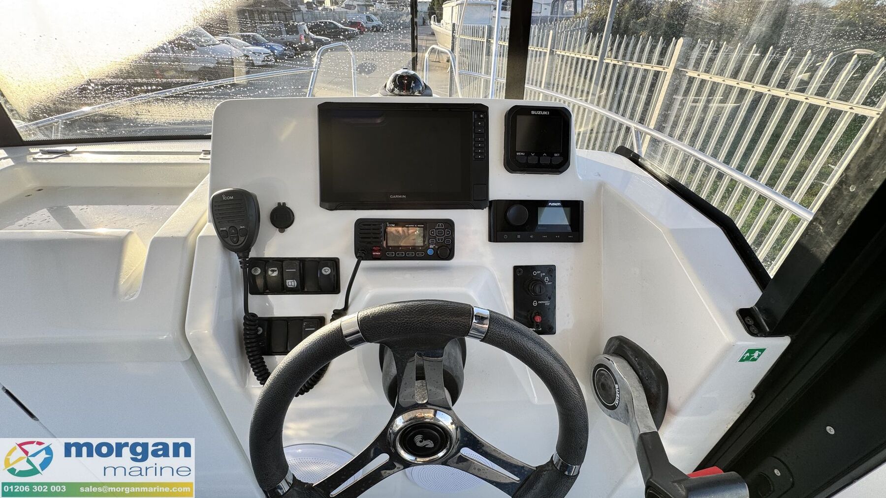 Electronics: Garmin 9 inch EchoMap chart plotter. Icom VHF radio. Fusion audio with speakers. Suzuki digital gauge. Navigation lights. Anchor light. 12v bilge pump. Compass. Isolator switches.
