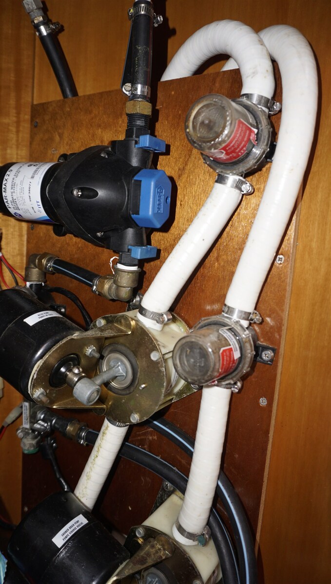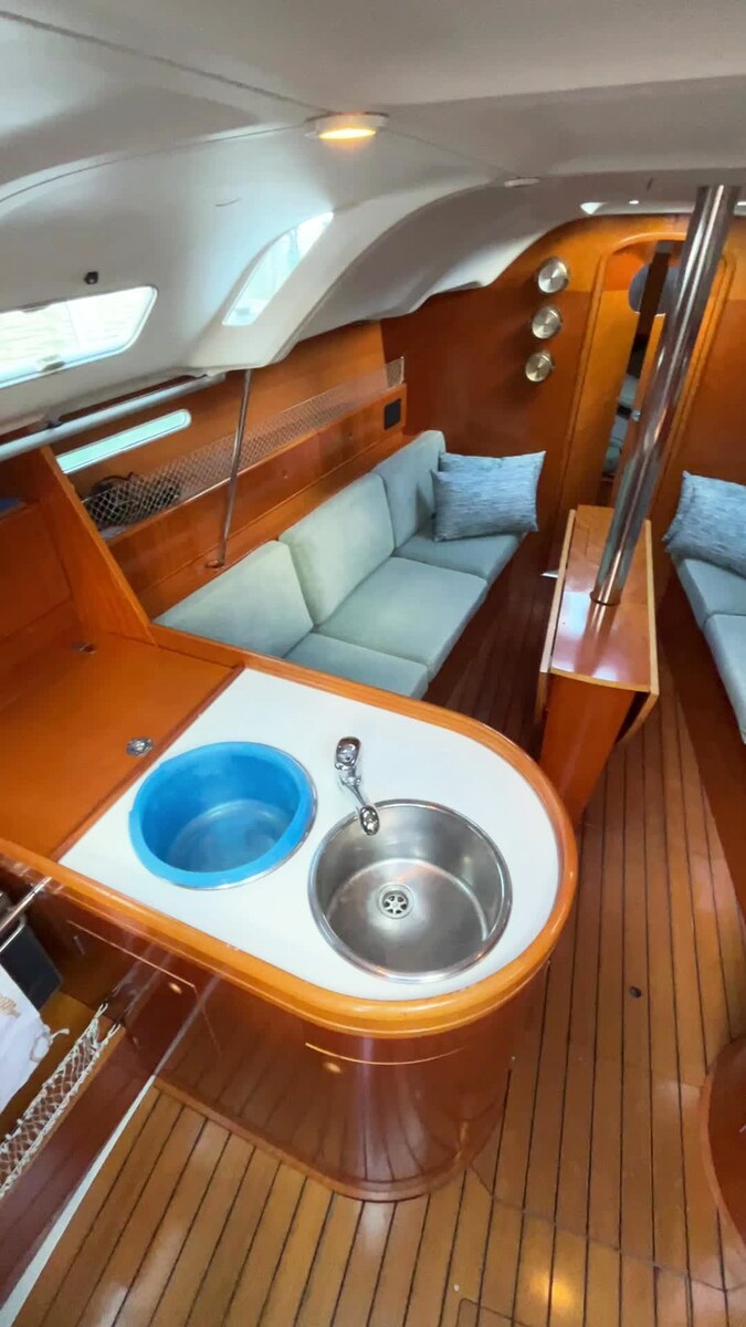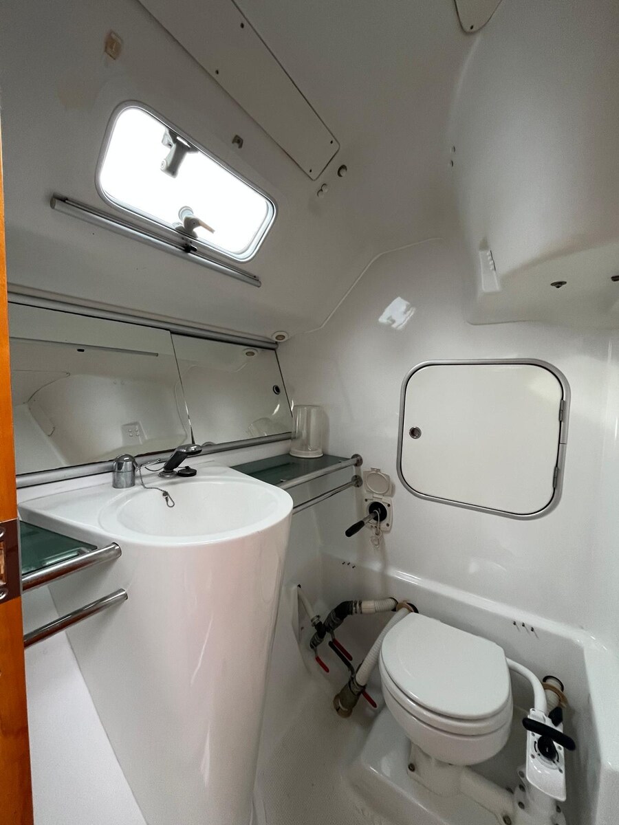 Alarme moteur, Eau sous pression, Câble d’alimentation à quai, Douche de cockpit, Pompe de cale manuelle, Prise de quai, Onduleur, Guindeau électrique, Echelle de bain, Windex.