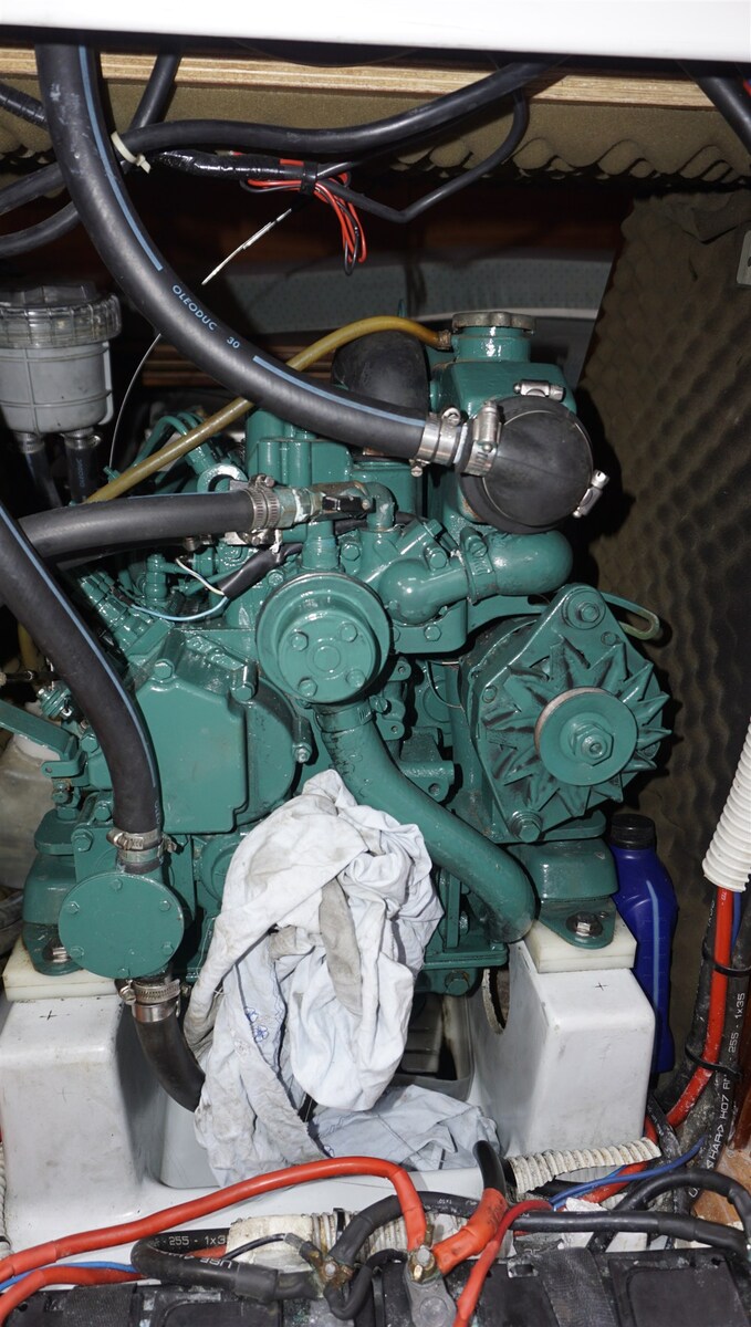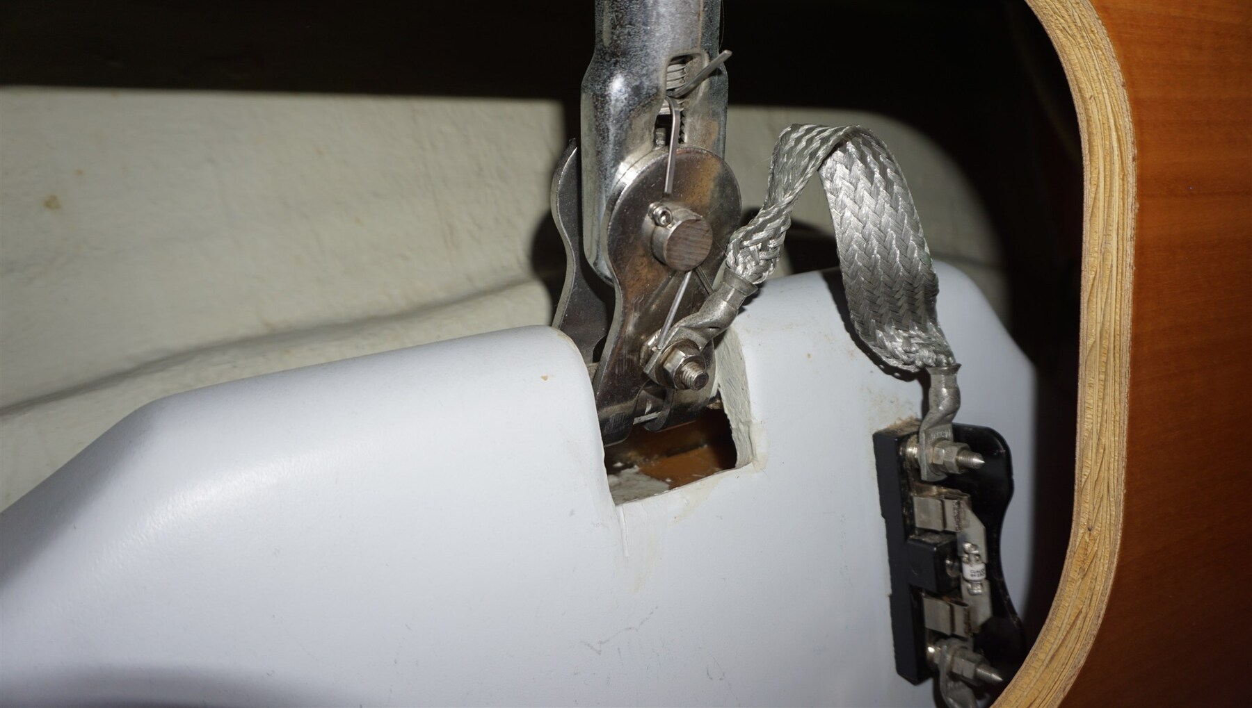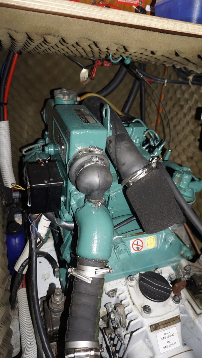 Motoralarm, Druckwasserpumpe, Landstromkabel, Cockpitdusche, manuelle Bilgepumpe, Landanschluß, Rectifier, elektrische Ankerwinde, Badeleiter, Windex.