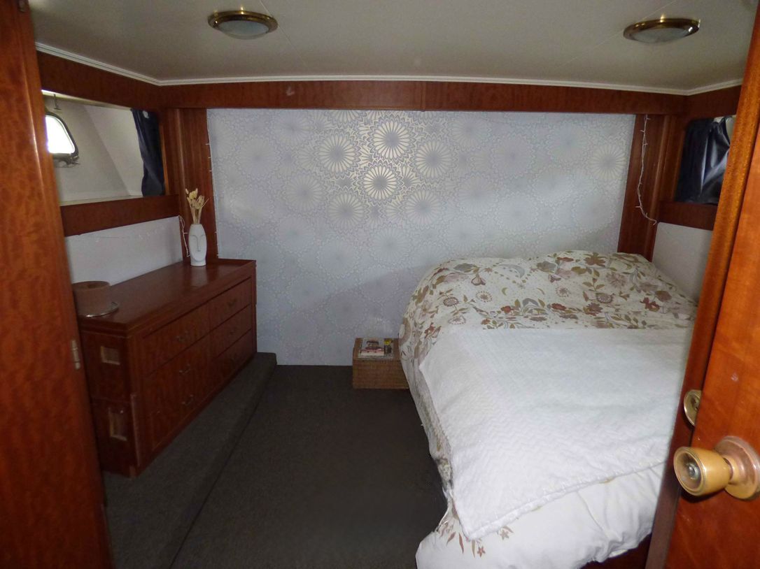 4 camarotes, incluido un camarote principal de popa a todo el ancho, con baño equipado con bañera (configuración poco habitual en esta eslora)