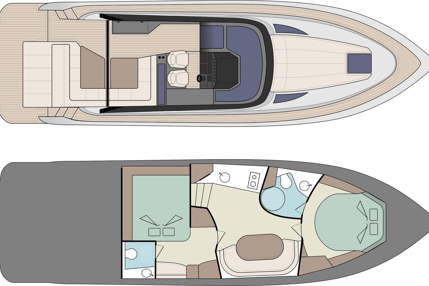 The fully-equipped, Focus Power 44 M/Y Dragonfly, with only 14 engine hours, is in like-new condition.