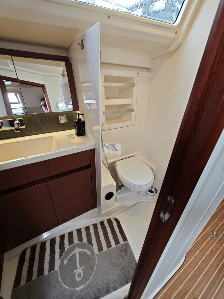 Anker (Delta 16kg mit 30m galvanisierter Kette), Waterdruk systeem, 3 Accu's (je 160 Ah AGM), Buitendouche (warm/kalt), Dubbele besturing, Boegschroef (12 V einziehbar inkl. Batterie), Zonnepanelen (200 Watt), Platform (Badeplattform manuell mit Flexiteak), Teak in kuip (Flexiteak, auch auf den Cockpitbänken), Walaansluiting 230V, Elektrische ankerlier (mit Fernbedienung und Ankerkettenzähler), Zwemtrap, Kuiptafel (mit Staufach und Kühlschrank), 2 Zeereling met opening, 2 Elektrische lier (Lewmar 45 EST Evo Fallwinschen), Windex.