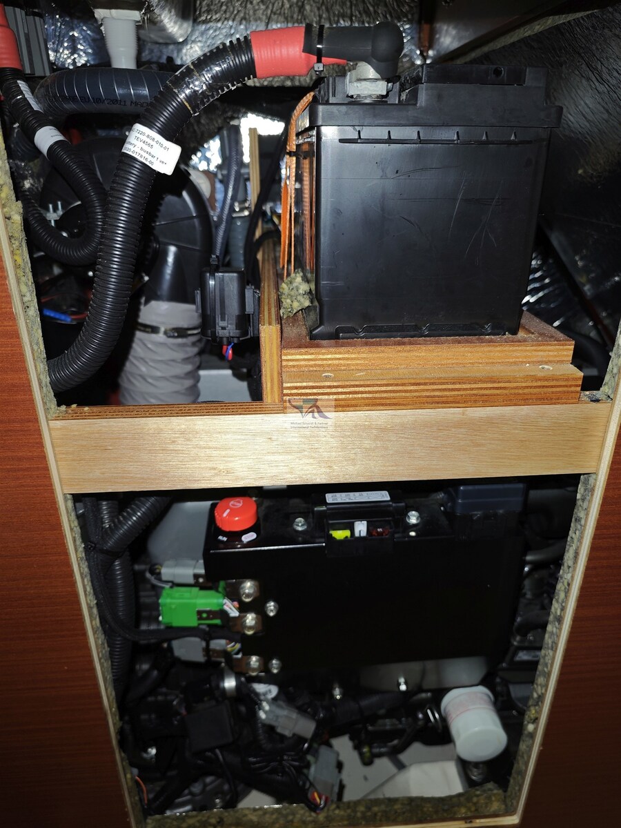 Warmwater boiler, Omvormer (12V/1600 W-60A, inkl. AC Panel), Verwarming (mit Auslässen in allen Kabinen), Elektrisch toilet.