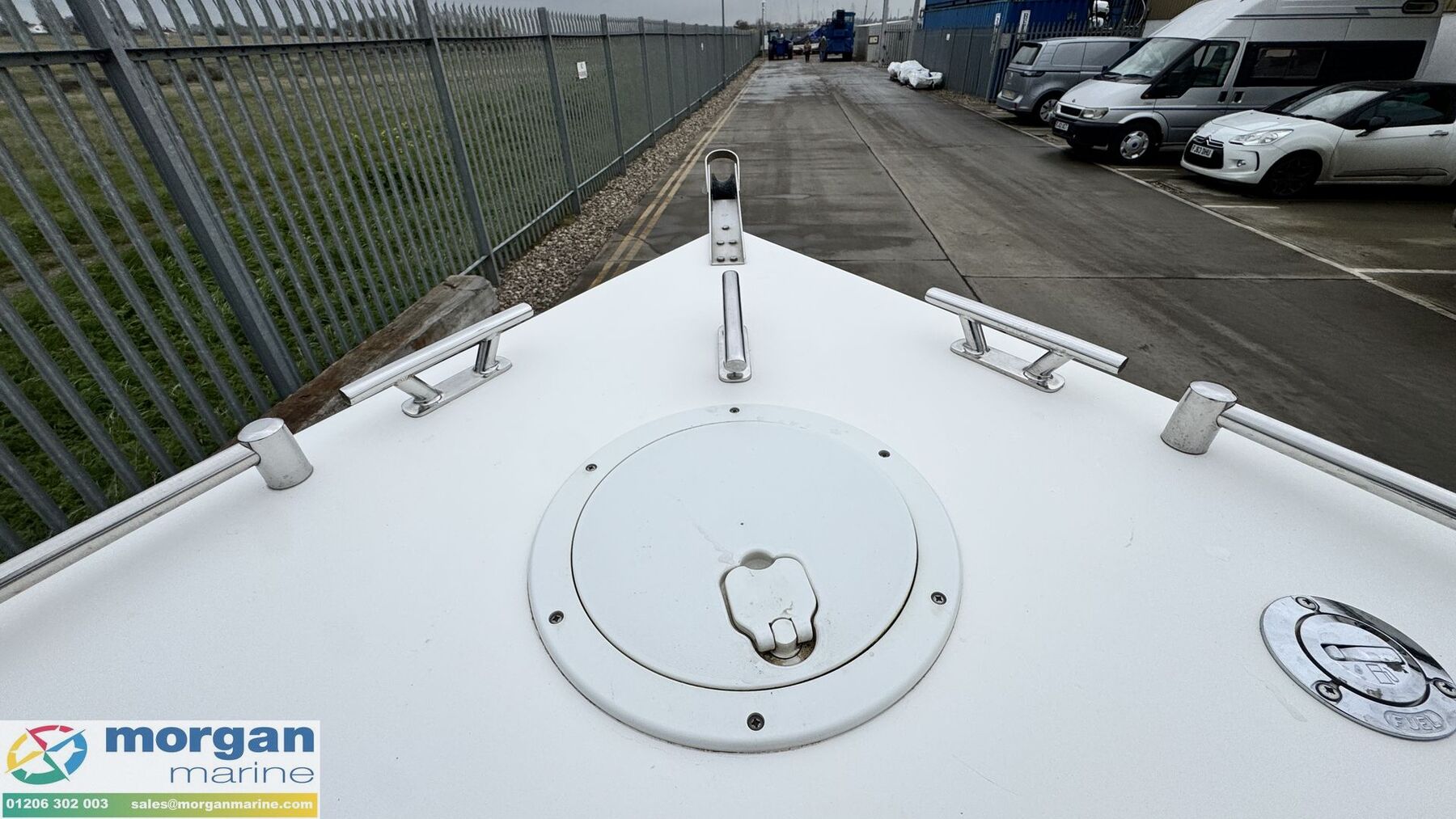Electronics: Raymarine Dragonfly 7 chart plotter and fish finder. USB sockets. RPM, trim and fuel gauge. Battery isolator switch. Manual and electric bilge pump.