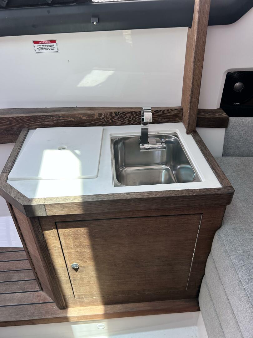 • Audio upgrade with one subwoofer on aft deck and 5ch amplifier and Fusion audio controls at helm and in cabin