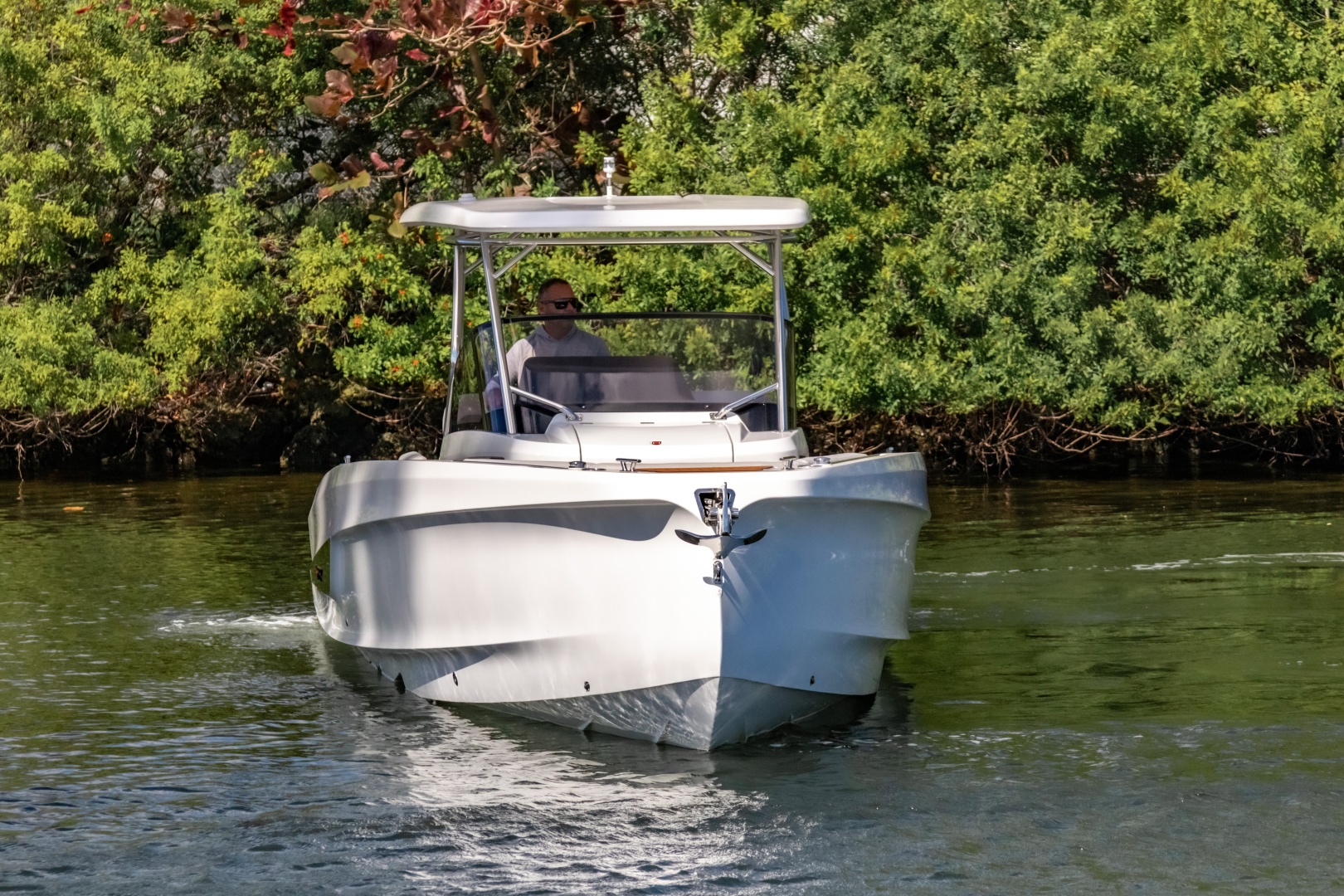 The convertible U-shaped lounge with sunbed transforms the deck into a vibrant social zone—perfect for open-air dining, entertaining, and romantic sunsets. Passenger seats with a leaning function ensure safe, enjoyable cruising. Bow and cabin storage keep everything neatly organized.