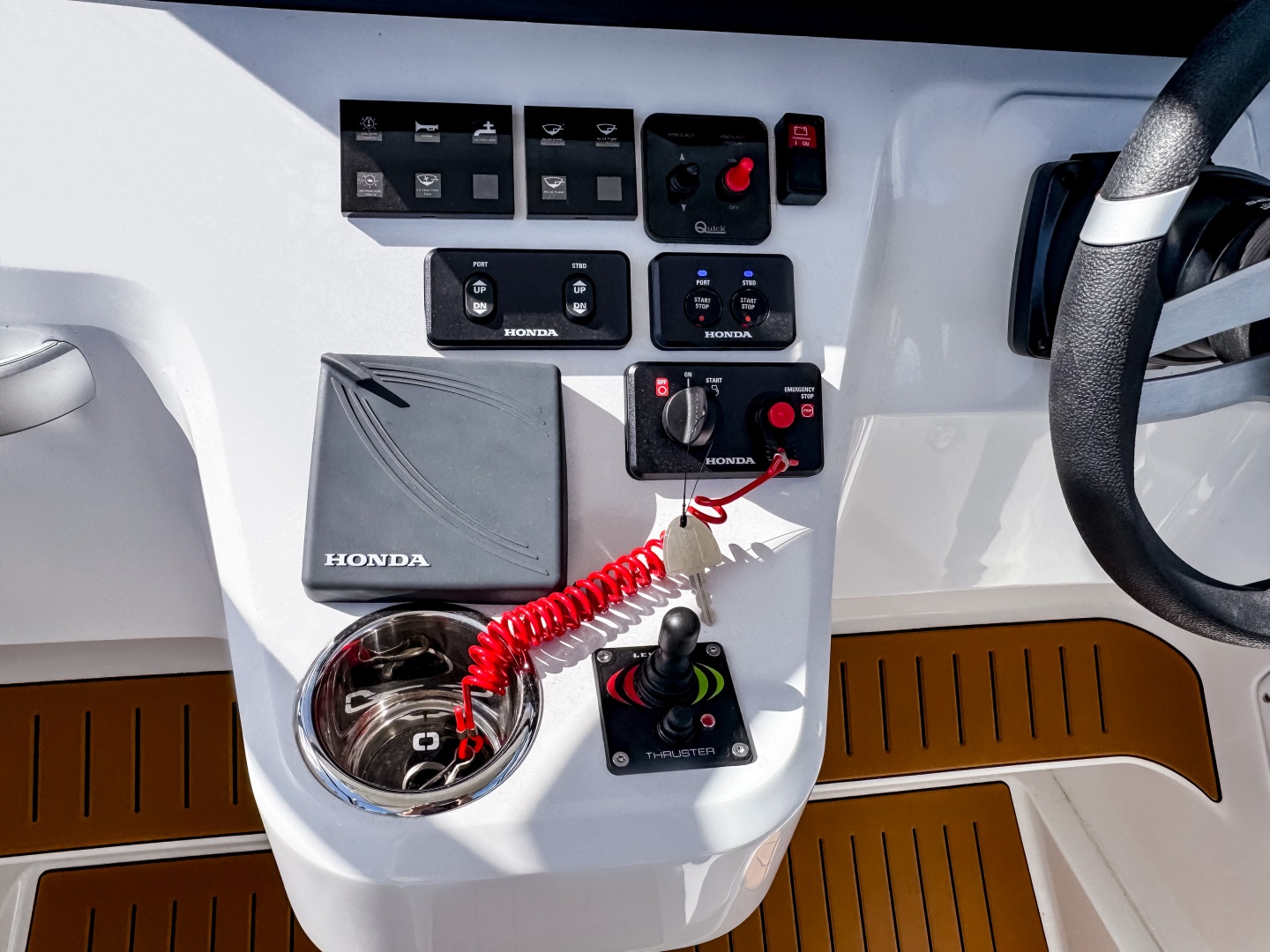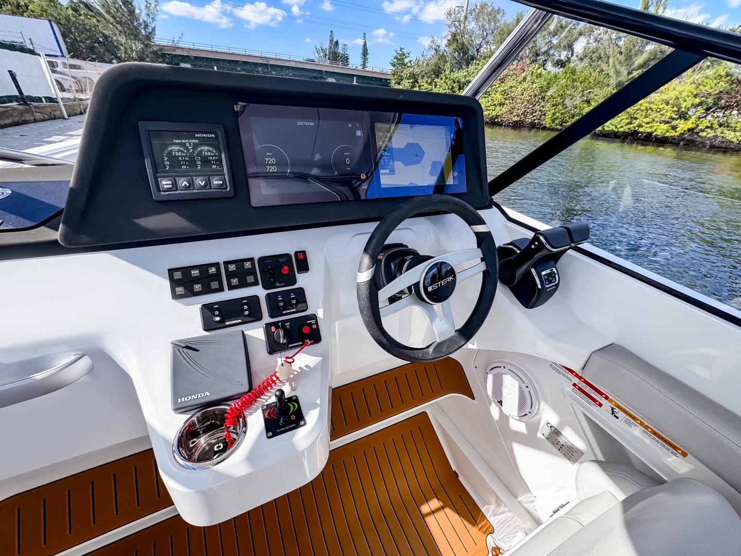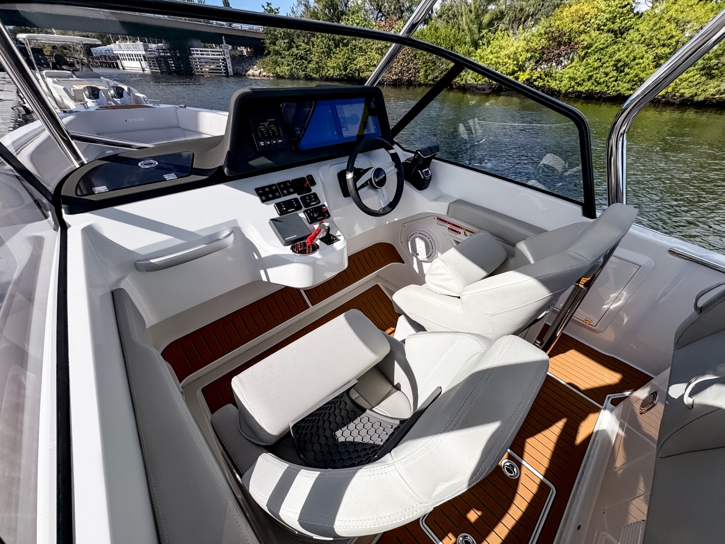 The driver’s position feels ergonomic, intuitive, and visually stunning. Sport Seats with flip-up bolsters and side support allow seated and standing helming. Angled dash designed for full visibility and glare reduction, even at high speed.