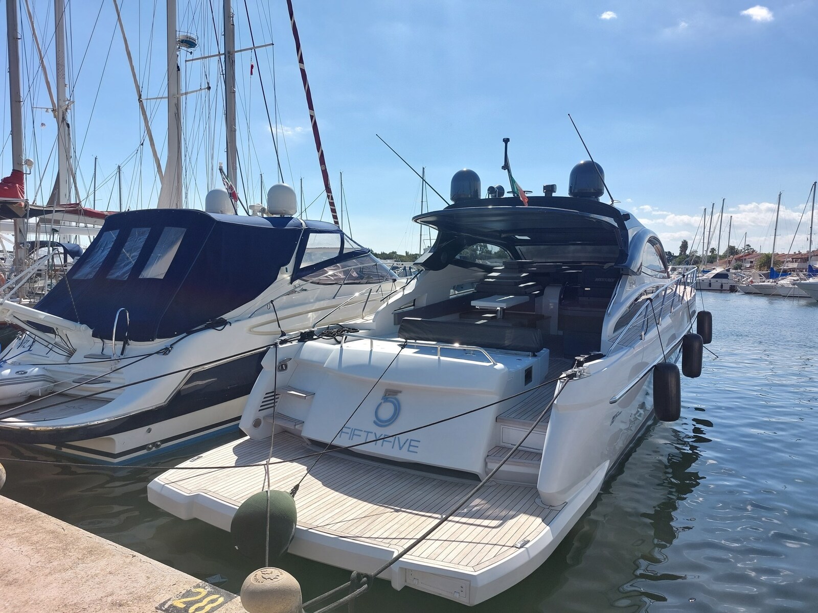 La nuova INfive non teme confronti. La più veloce della categoria con 45 Kn di massima. 3 cabine + marinaio o garage in 16 metri. Per chi vuole uscire fuori dagli schemi. IN five monta i MAN i6 da 800 hp e la propulsione è garantita da trasmissioni di superficie Top-System che, sostenute dal sistema “Easy-trim” garantiranno allo yacht non solo livelli prestazionali d’eccellenza ma anche la planata a bassa velocità. La manovrabilità sarà affidata al joystick in plancia di comando. Fiftyfive aggiunge elica di prua ed elica di poppa per una manegevolezza massima anche in fase di ormeggio in condizioni critiche. Pari al nuovo, e pronta ad ogni prova, questo sport yacht di ultimissima generazione aspetta soltanto un nuovo armatore per vivere altre entuasmanti stagioni. Possibilità di subentro al leasing in corso.