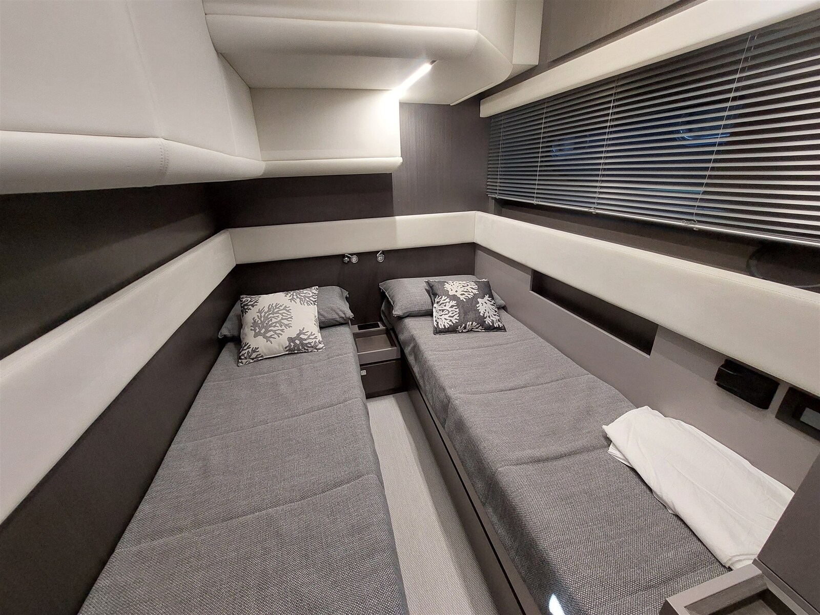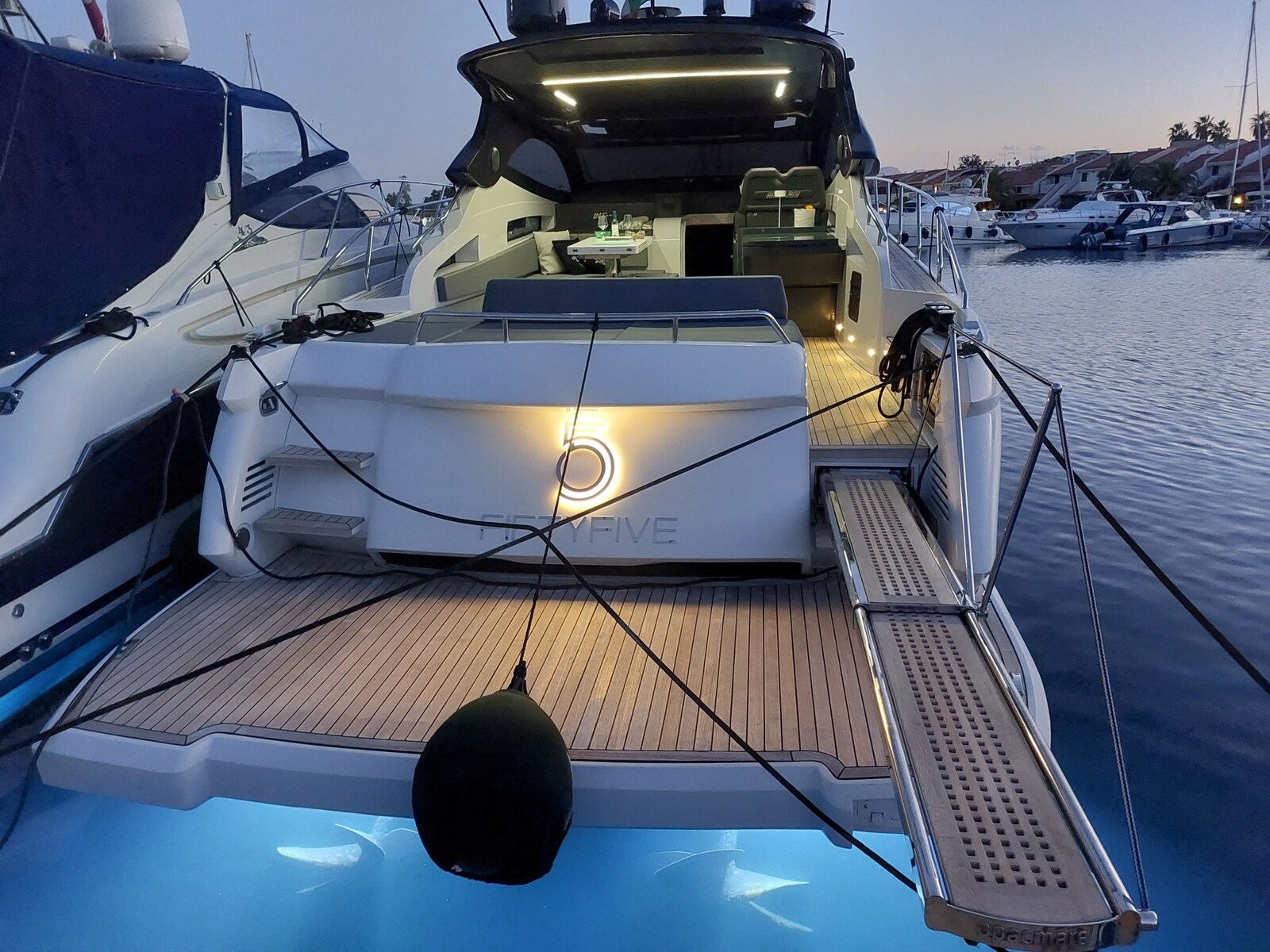 Le nouvel INfive n’a pas son pareil. Le plus rapide de sa catégorie avec un maximum de 45 nœuds. 3 cabines + marin ou garage à 16 mètres. Pour ceux qui veulent sortir des sentiers battus. IN five est équipé du MAN i6 de 800 ch et la propulsion est garantie par des transmissions de surface Top-System qui, soutenues par le système « Easy-trim », garantiront au yacht non seulement d’excellents niveaux de performance mais aussi un planage à basse vitesse. La manœuvrabilité sera confiée au joystick situé sur le poste de barre. Fiftyfive ajoute un propulseur d’étrave et un propulseur de poupe pour une maniabilité maximale même lorsqu’il est amarré dans des conditions critiques. Comme neuf, et prêt à tous les essais, ce yacht de sport de dernière génération n’attend plus qu’un nouveau propriétaire pour vivre d’autres saisons passionnantes. Possibilité de reprendre le bail en cours.