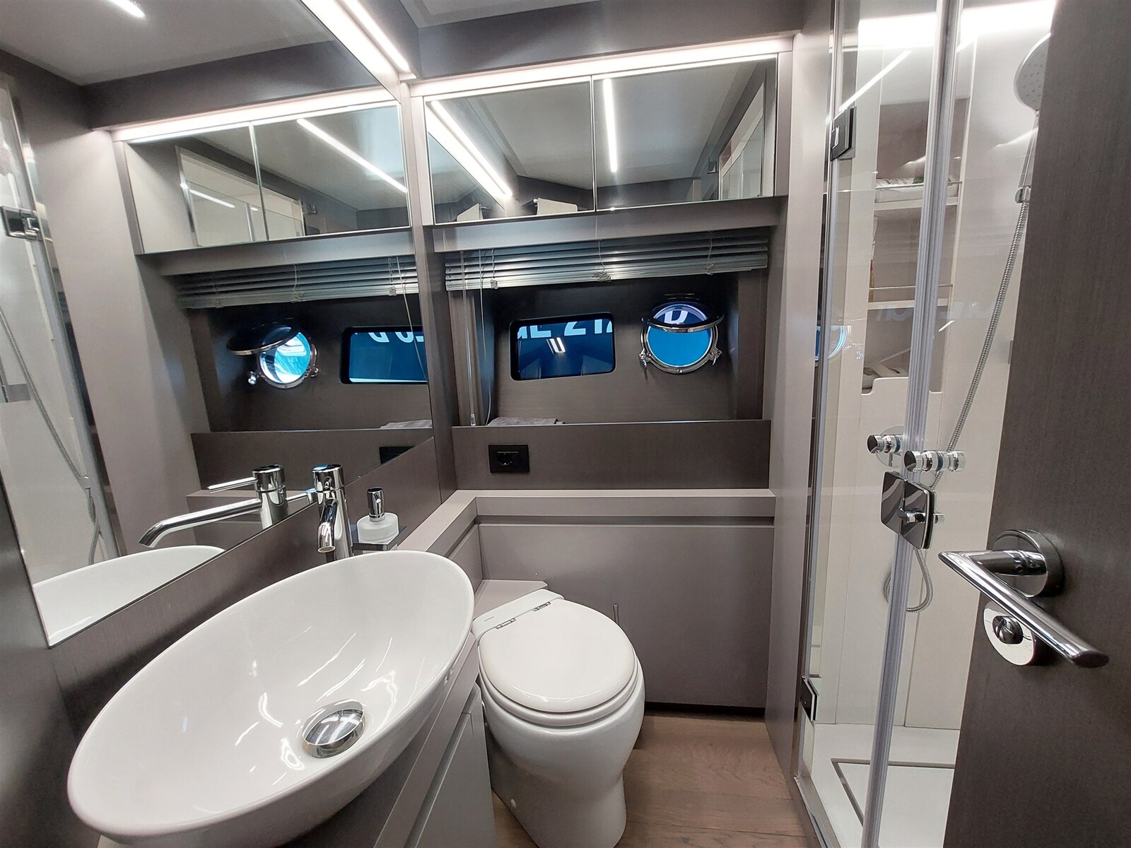 Acqua Calda, BBQ/ Grill, Boiler (Bivalente), Cassaforte, Dimmer per Luci (Luci esterne), 2 Indicatore del serbatoio del carburante, Indicatore del Serbatoio dell’Acqua, Indicatore del Serbatoio delle Acque Reflue, Indicatore della pressione dell’olio nel motore, Indicatore della temperatura del motore, Pavimento interno in legno, Prese interne 12v, Prese interne 220v, Serbatoio Acque Nere, 3 WC marino elettrico.