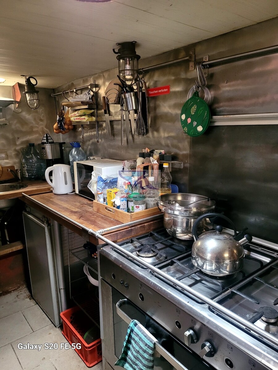 Galley, Burner (5-flammiger Gasherd La Germania), Mechanical Refrigerator, Coffee Machine, Ceramic hot plate.