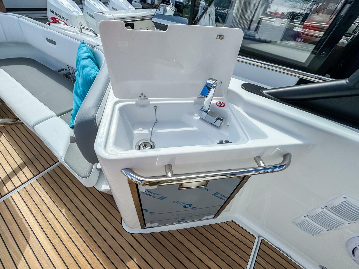 • Stainless steel drawer fridge in aft cockpit, 20L