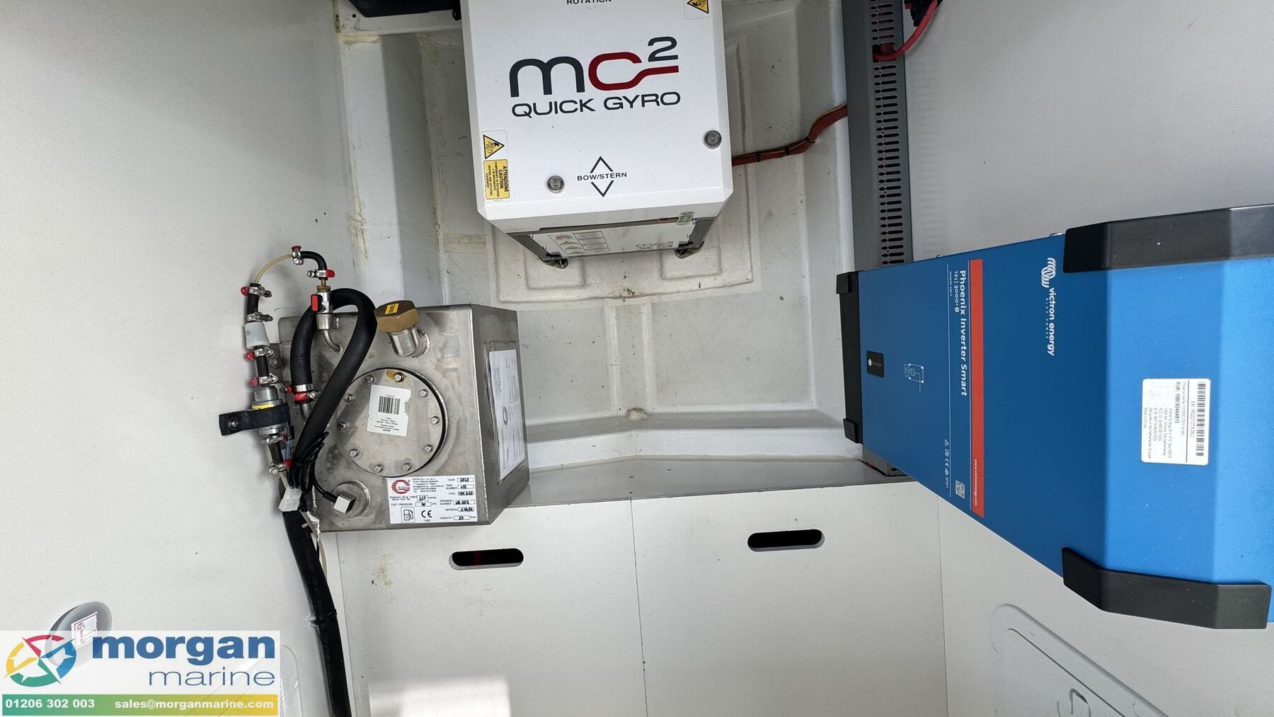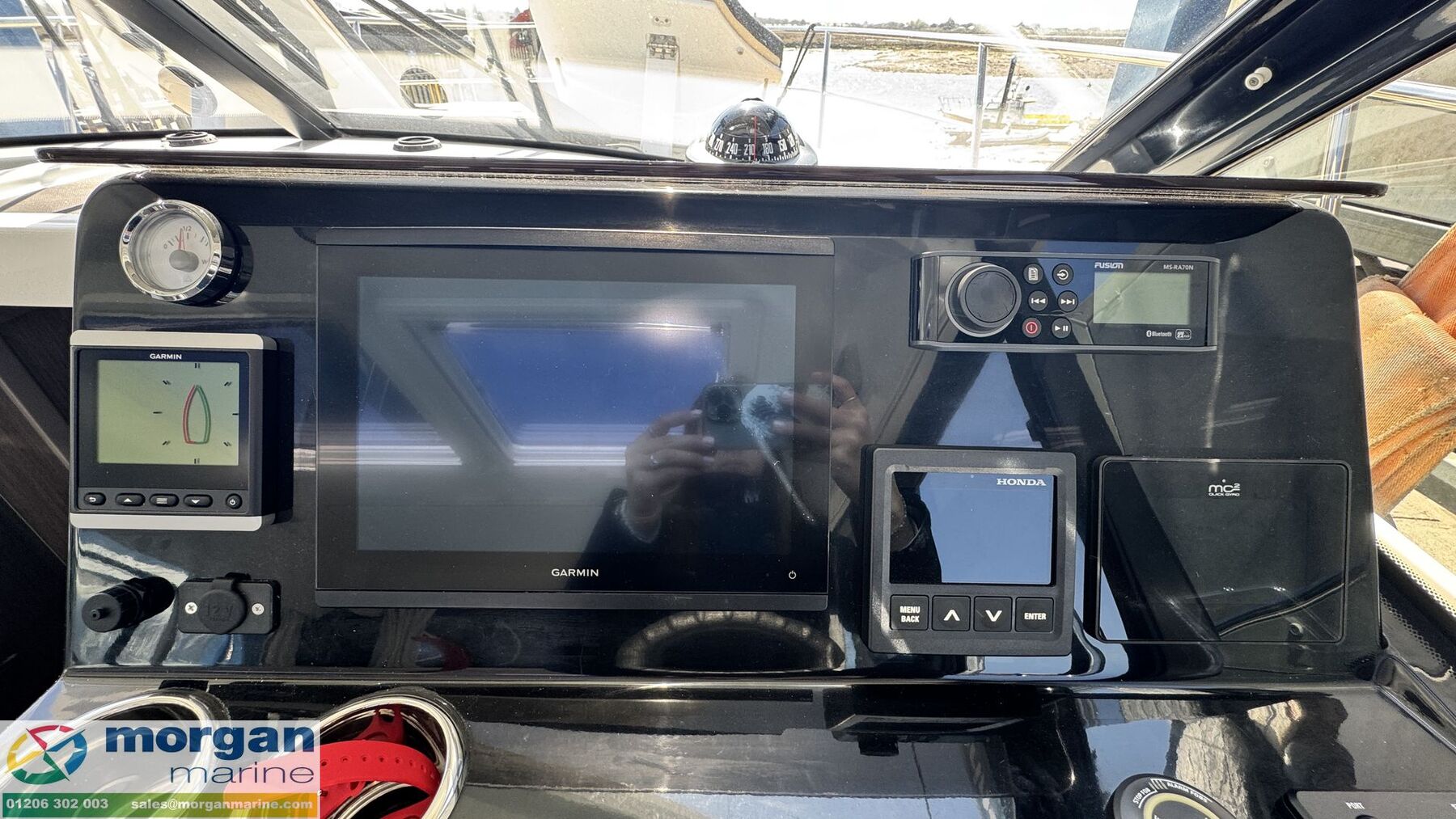 Electronics: Garmin GPSmap 1223xsv chart plotter. GT15M-IH Transducer. Fusion audio pack - Fusion RA70N + Bluetooth, USB plug, 4x loudspeakers (2x inside / 2x outside). Garmin Radar system GMR 18 HD with scan strut base and APT light bar. Garmin autopilot system integrated to chartplotter. Garmin stern camera integrated to chart plotter. Victron smart inverter capable of 300w peak leads. Automatic system powering all 230v sockets on board. Quick MC2 model x3 stabiliser system. 3x Lithium marine 200ah house batteries. 3x Victron smart BMS CL12/100. Victron Energy Skylla-IP65 12 / 70 (3 outlet) battery charger. 2x Victron smart shunts for battery monitoring via Bluetooth. 2x Lithium life starter batteries. Lithium life 110ah bow thruster battery. Garmin VHF 215. Garmin GNX Wireless wind pack. Fell MOB system with 4x fobs. Garmin AIS 800 unit. GT56 UHD transducer. Shore power. Honda digital display. Horn. LED lights in cockpit floor + ambiance LED lights in wheelhouse and cabins. Navigation lights. 220v water heater with time switch.
