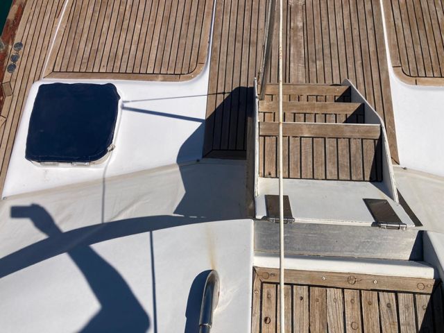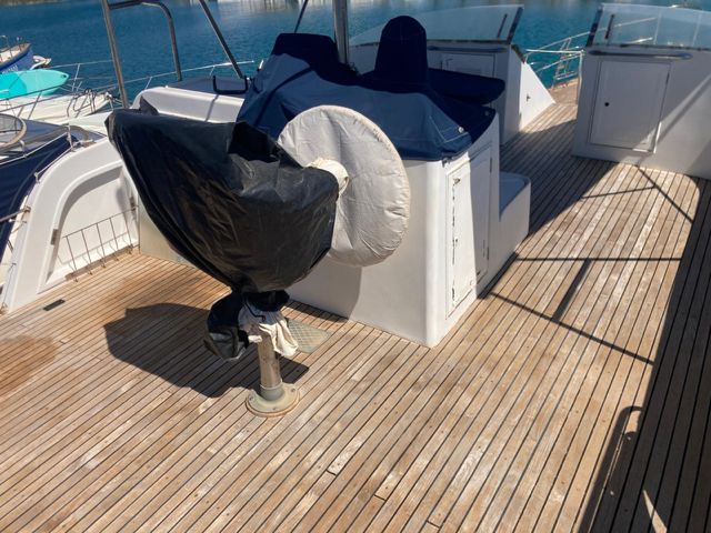 Electric windlass – Hydraulic gangway – Teak deck – Sun awning – Bimini – Water heater – Bow and stern thrusters