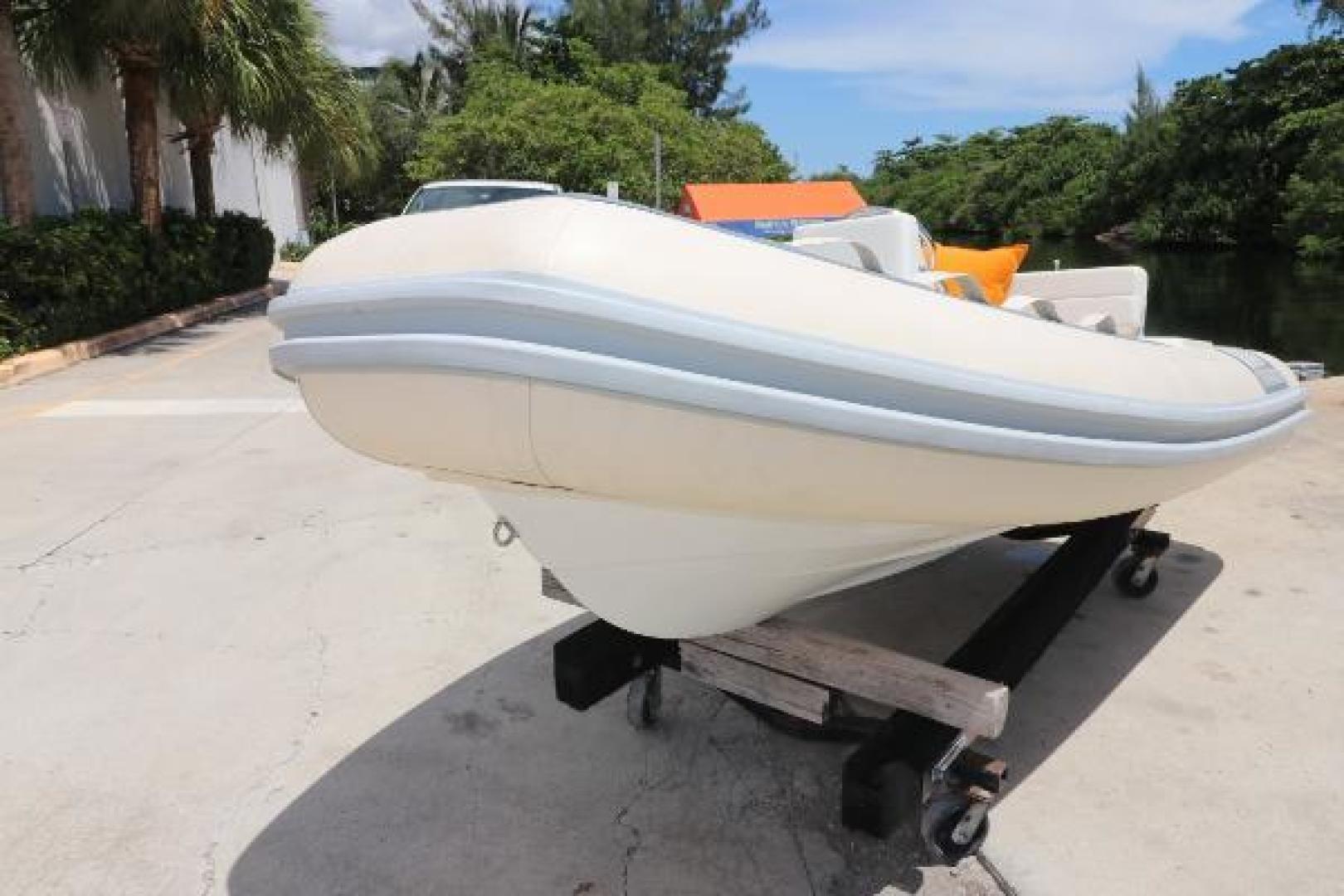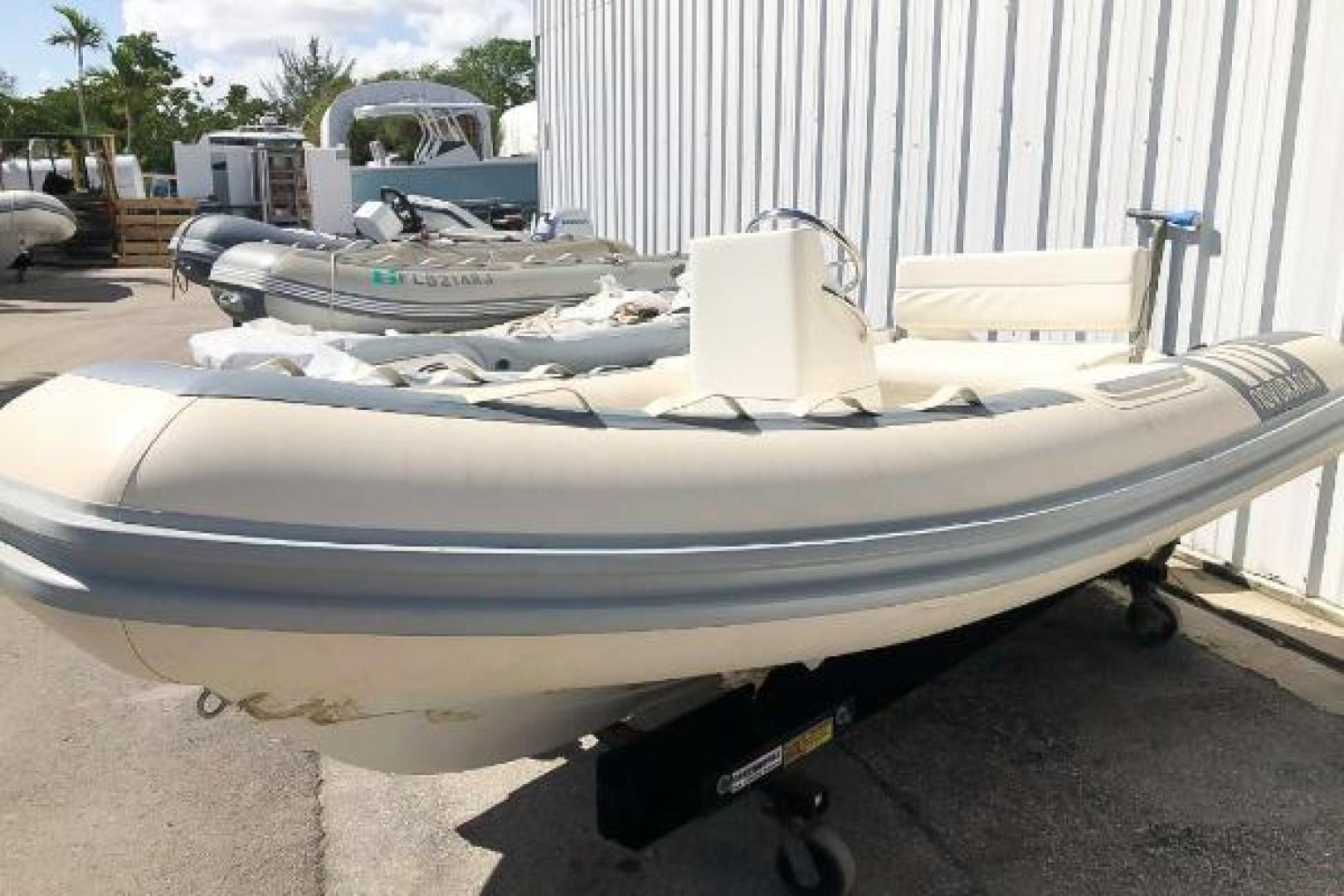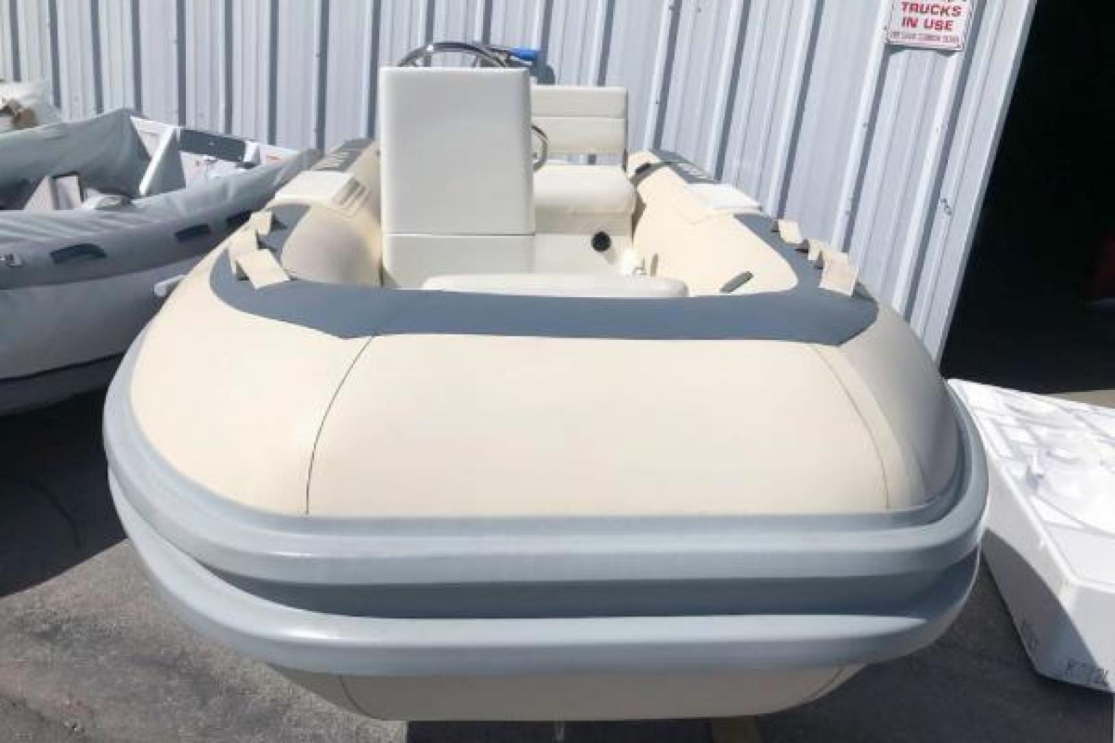 This new 2015 Novurania 360 DL features crème tubes with gray accents. Its spacious design accommodates up to six passengers, making it the perfect rigid hull inflatable tender for a demanding yacht. It is 11’9” in length with a 5’6” beam. The hull weighs just 425 lbs and is a C in the CE Boat Design Category. This is priced as boat only. For an additional price, several engine options are available, with a Yamaha F40 HP suggested.