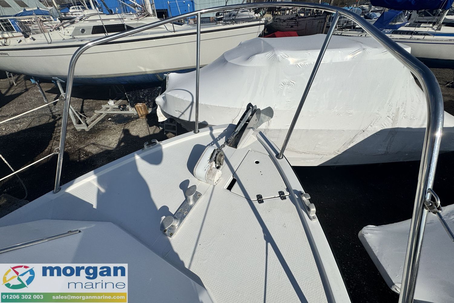 This stunning Orkney Day Angler 24 just arrived at Morgan Marine, is perfect for both fishing trips and outings with family and friends. It features a spacious open cockpit, a large wheelhouse, a roomy V-berth, and a generous aft deck with ample seating, making it ideal for fishing. The boat is equipped with a range of electronics, including a Raymarine chart plotter, Raymarine Radar, Standard Horizon VHF radio, electric windlass, trim tabs, bow thruster, and much more! High pedigree of boat with excellent sea keeping qualities. Powered by an Yanmar 190 diesel inboard engine with a very good service history. Call now for viewing as this boat wont be around for long!