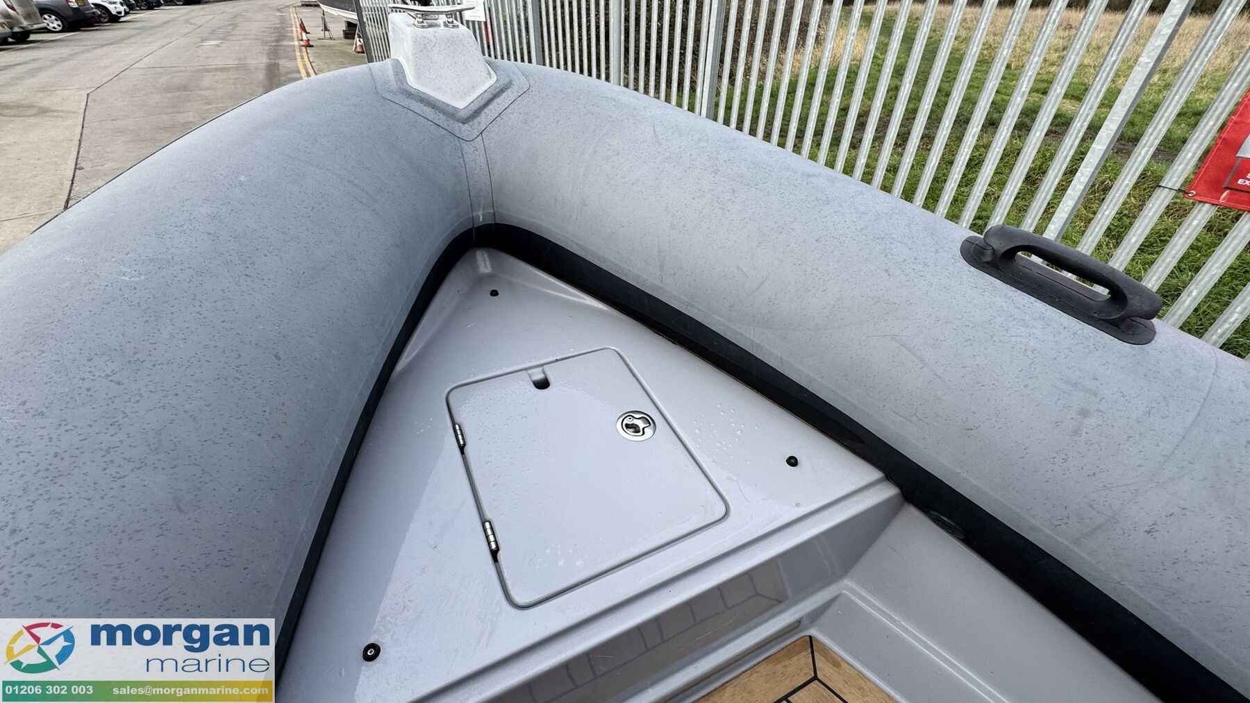 Deck: Copper coated hull. Hypalon tubes. GRP hull. Bow roller. A-frame with tow eye. Ribeye A600 full tailored mooring cover. Mooring cleats on A-frame and bow. Grab handles. Bathing platform with fold down boarding ladder. Anchor locker with anchor, chain and rope. Synthetic teak decking. 4 point lifting eyes.