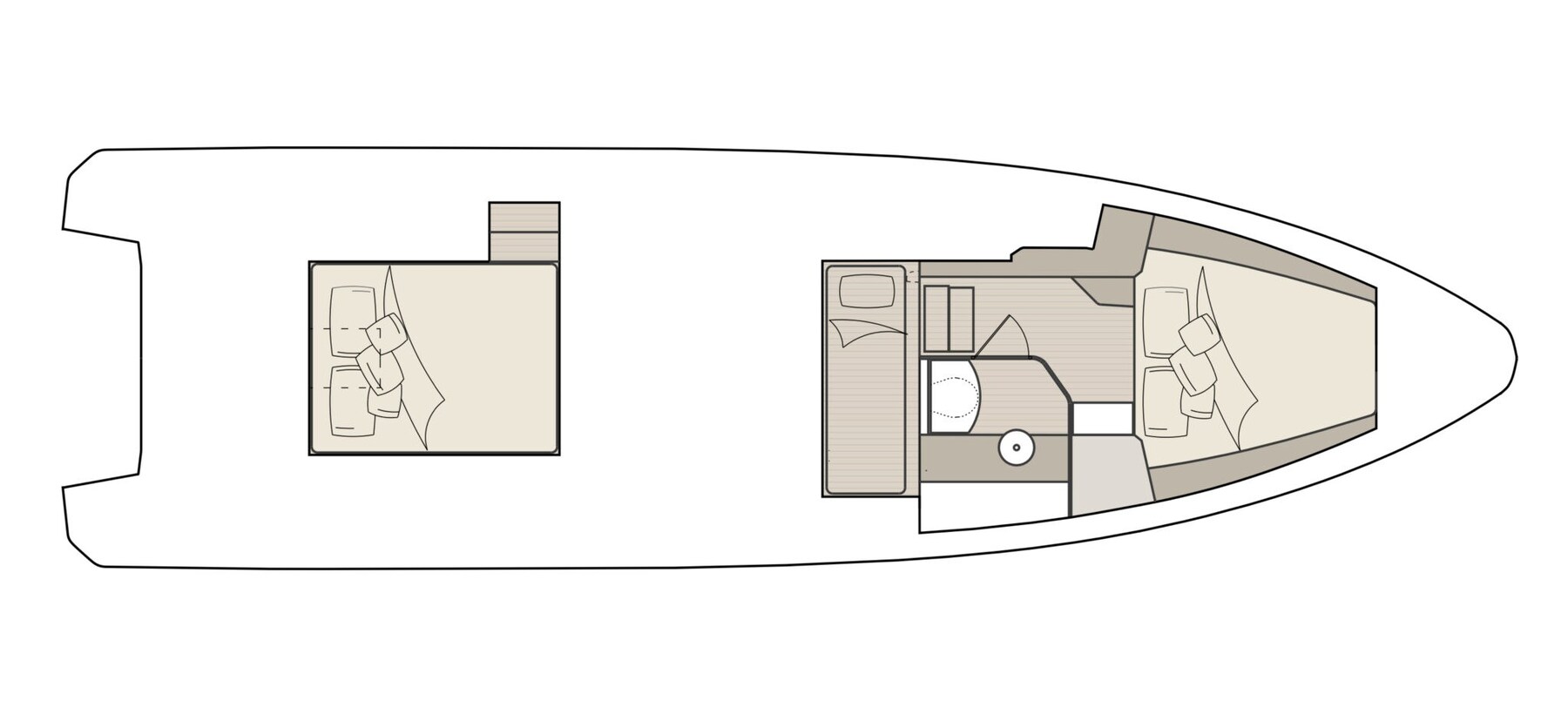 La Saxdor 400 GTC, è progettata per motorizzazioni fuoribordo doppie e sfrutta un’architettura navale esclusiva, garantendo un’esperienza di navigazione memorabile. Il ponte principale presenta un design innovativo con wheelhouse a tutta larghezza, ottimizzando gli spazi interni. Rispetto alla GTO, la GTC aggiunge un tocco di lusso grazie alle ampie superfici vetrate isolate, che creano un ambiente luminoso e accogliente, protetto dagli agenti esterni. Il layout consente un collegamento diretto alle terrazze laterali, per un’esperienza di relax simile a un’isola privata. Sottocoperta, due scale conducono alle cabine doppie – a prua e a centro barca – che condividono un bagno; è disponibile anche un terzo letto opzionale per bambini. Ogni dettaglio è progettato con eleganza e funzionalità. Contattaci per maggiori informazioni.
