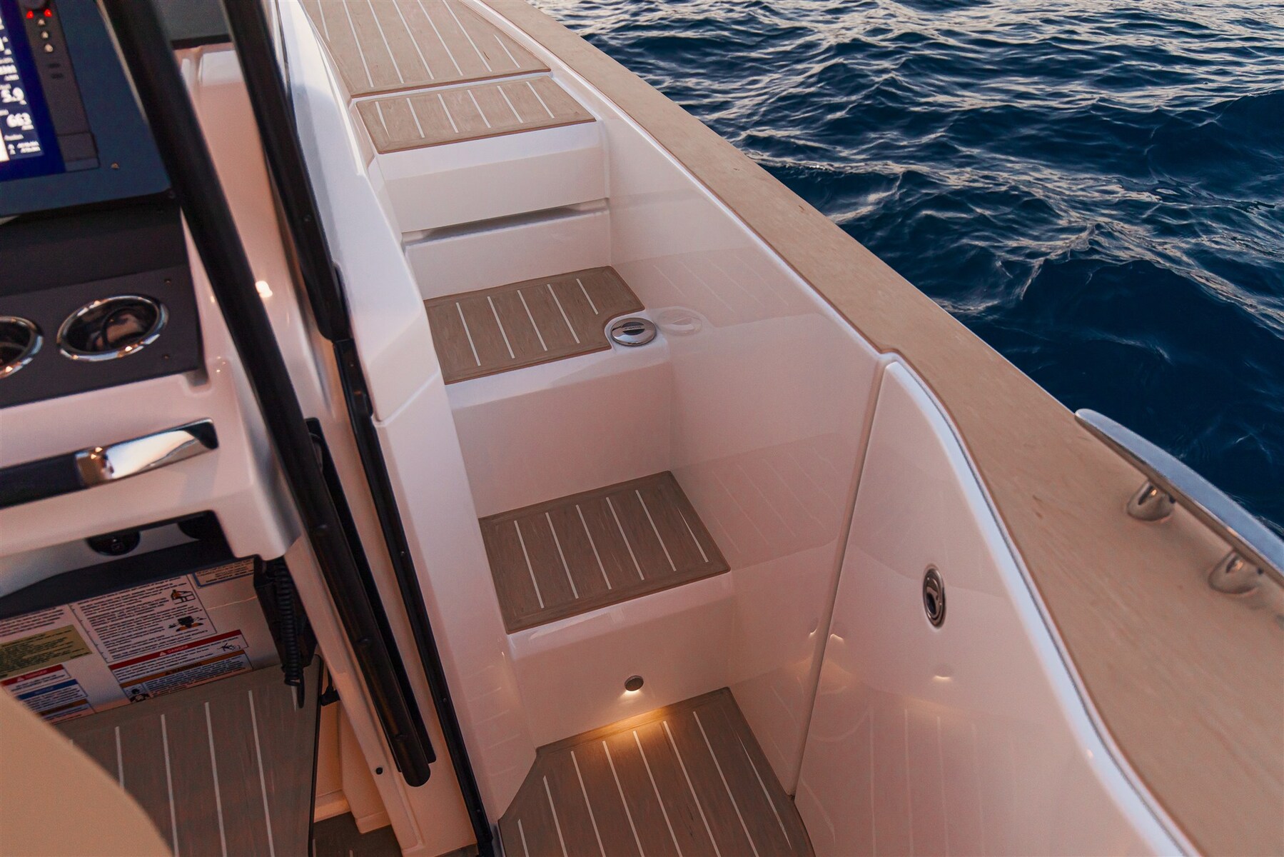 2 Аварийный сигнал двигателя, Аварийный сигнал трюма, Альтернатор, Auto Dynamic Trim Interceptor, Автоклав, Автоматический дифферент, 4 аккумуляторы, Складные бутсы, Боковые проходы из тика (Sintetico), Зарядное устройство (Mastervolt), Кабель берегового питания, Леера, внешняя душа, Электрические клапаны (Lenco), Hard top, Индикаторы закрылка, Умывальник в кокпите, любезность фонари, подводный свет, Отбойники, 3 Автоматический трюмный насос, Тиковая палуба (Sintetico), Входная дверь, Колодец из тика (Sintetico), Прямая розетка от причала, Прямая розетка от причала, Выпрямитель, Электрическая якорная лебедка, Трап ванной, cockpit table (Abbattibile), guard rails with gates.