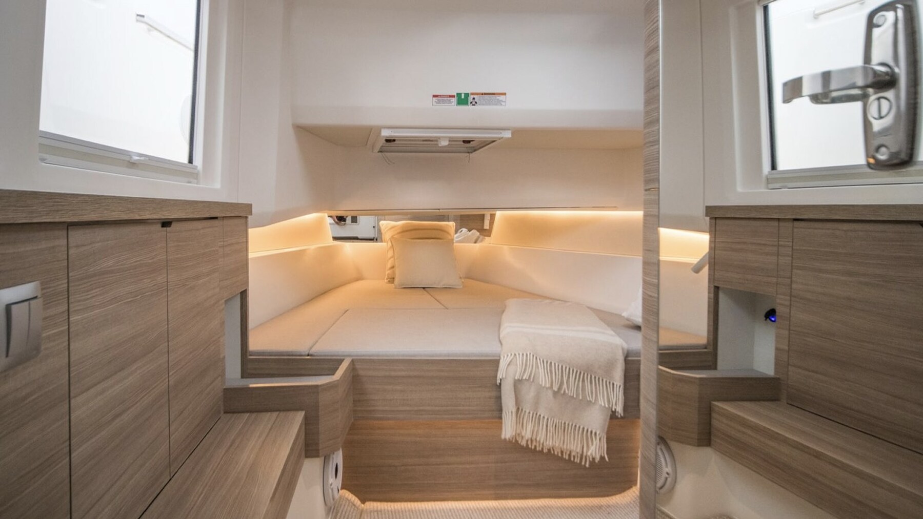 2 Motoralarm, Bilgealarm, Wechselstromgenerator, Auto Dynamic Trim Interceptor, Druckwasserpumpe, Auto-Trim, 4 Batterien, Faltbare Stollen, Teak auf Laufdecks (Sintetico), Batterieladegerät (Mastervolt), Landstromkabel, Reling, Cockpitdusche, elektrische Trimmklappen (Lenco), Hardtop, Trimmklappen Anzeigen, Waschbecken im Cockpit, Nachtbeleuchtung, Unterwasserbeleuchtung, Fender, 3 automatische Bilgepumpe, Teakdeck (Sintetico), Eingangstür, Teak im Cockpit (Sintetico), Landanschluß, Wasseranschluss, Rectifier, elektrische Ankerwinde, Badeleiter, Cockpittisch (Abbattibile), Relingsdurchstiege.