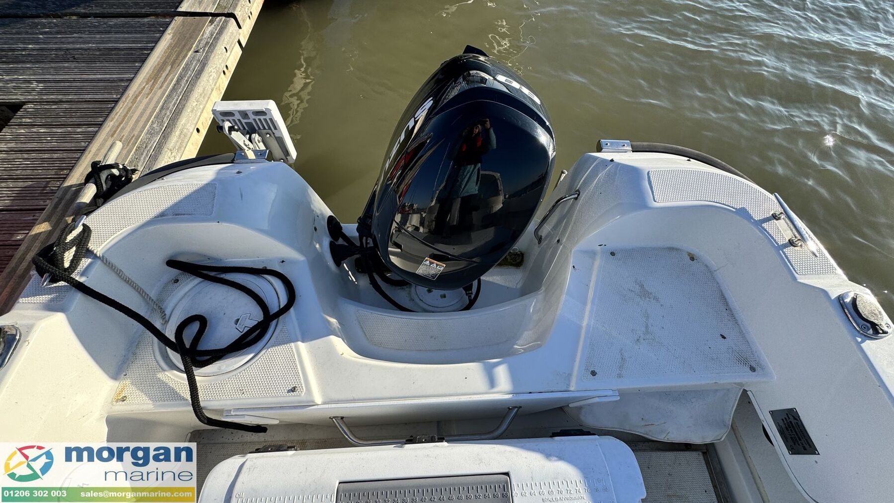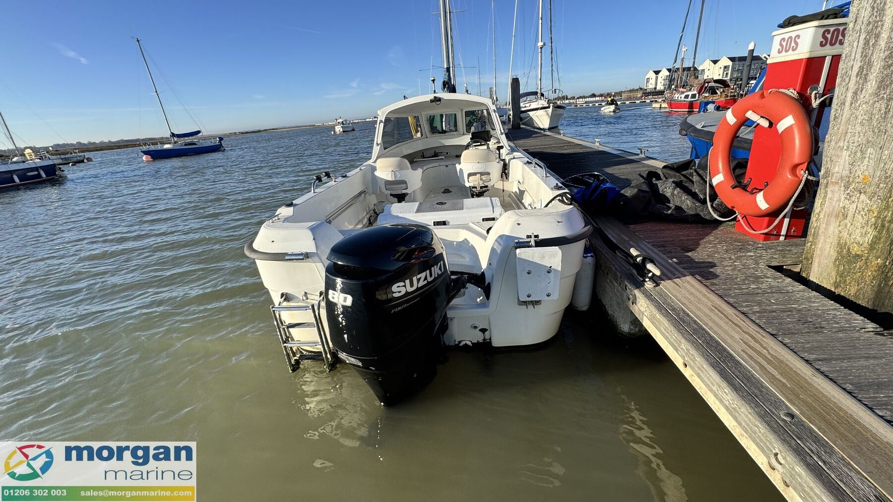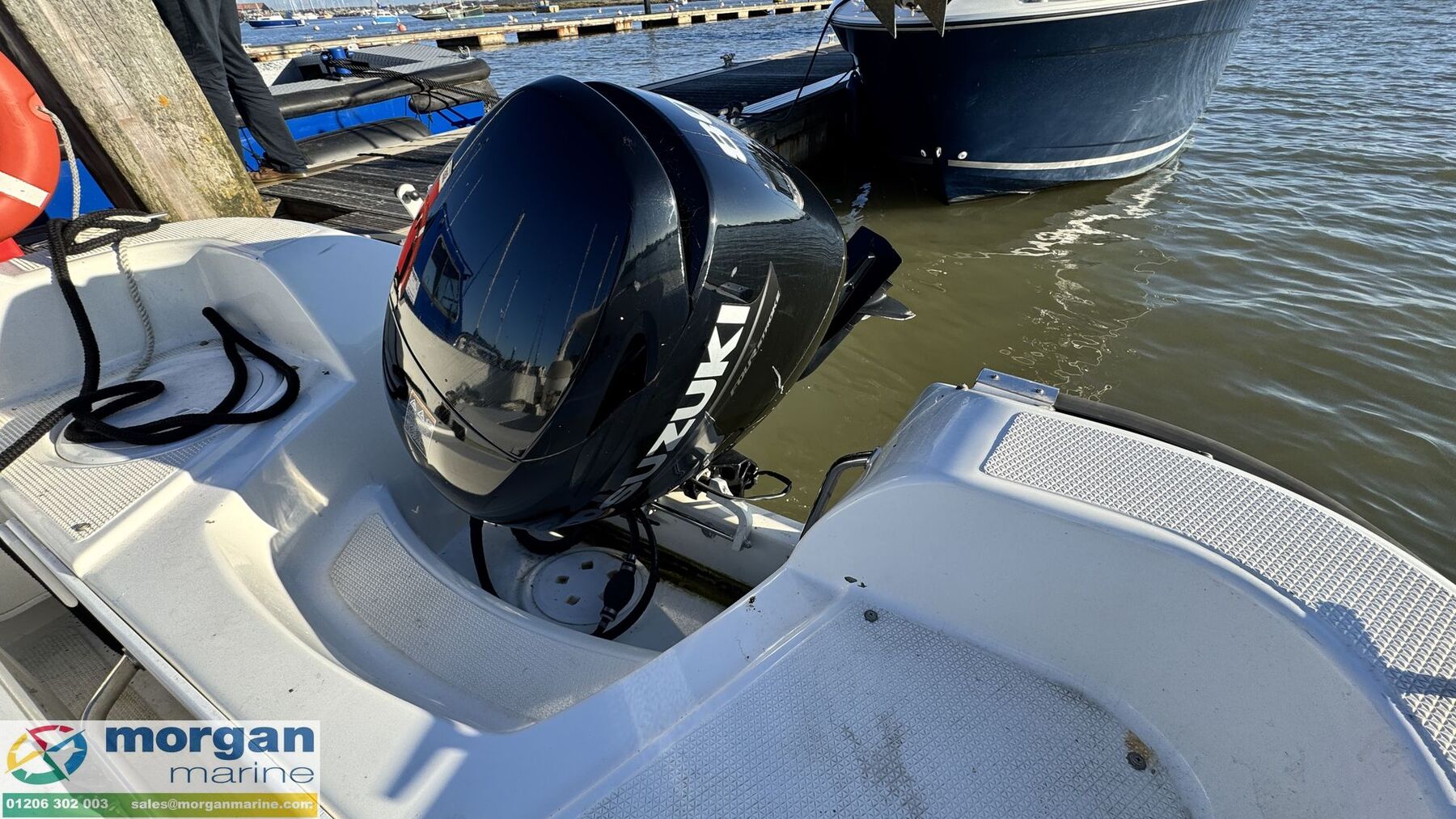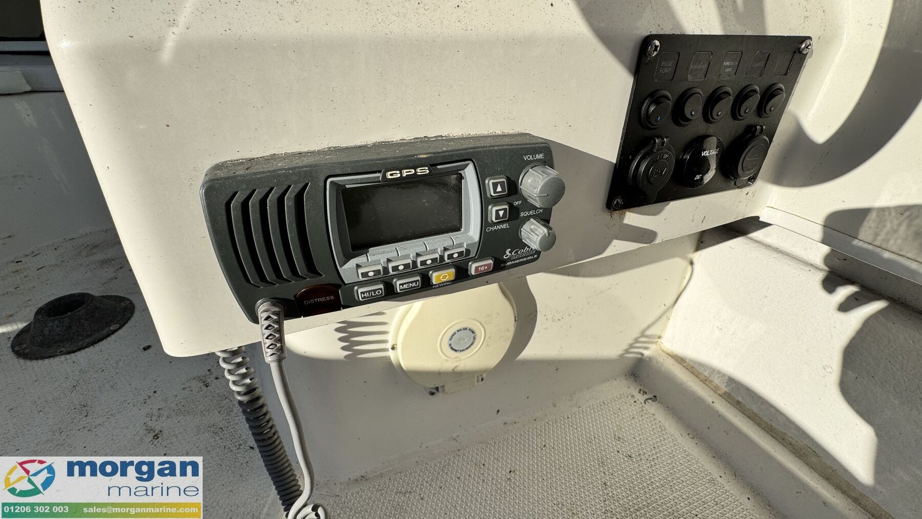 Electronics: Garmin chart plotter. Cobra VHF radio with GPS. 12v socket. USB socket. Manual and electric bilge pump. Foredeck light. Suzuki trim and RPM gauges. Switch panel. Anchor light. Navigation lights. Compass. Battery isolator.