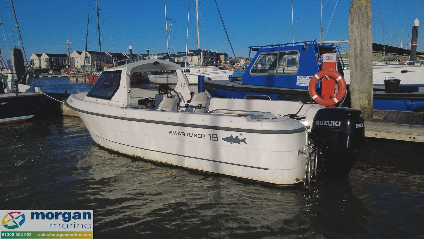 2022 Smartliner Cuddy 19. Charlotte is a brilliant option for both anglers and leisure boaters, she offers an economical and versatile ride that’s easy to handle and delivers impressive on-water performance. Powered by a Suzuki DF80 outboard with electric start and power trim and tilt, with approx 100 engine hours, this popular model is ready for adventure. Charlotte features a spacious cockpit with ample room for fishing or relaxing, complete with rod holders, an enclosed cuddy with bench seating, and adjustable swivelling pilot and co-pilot bolster seats. Onboard navigation and communications are fully equipped with a Garmin chart plotter and Cobra VHF radio with GPS, and she comes presented with a protective Tonneau cover and a host of smart onboard extras. Don’t miss the chance to view this sought-after Smartliner. Contact Morgan Marine today to arrange an early viewing!