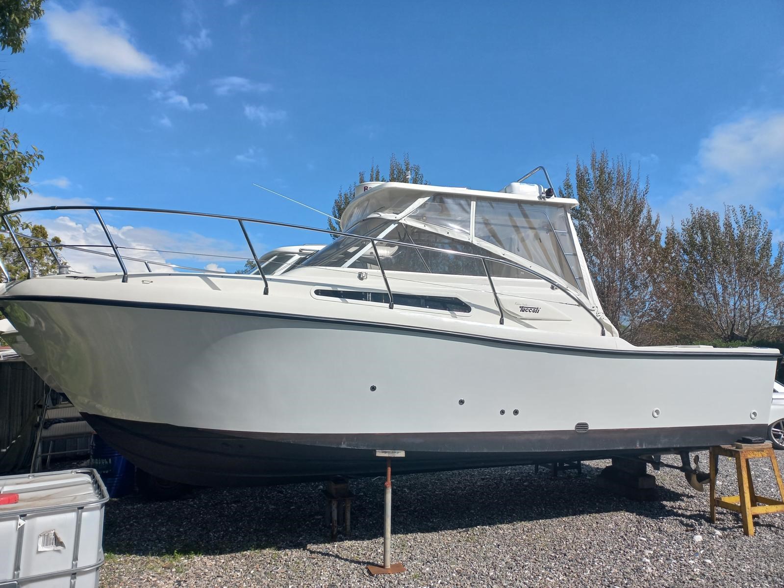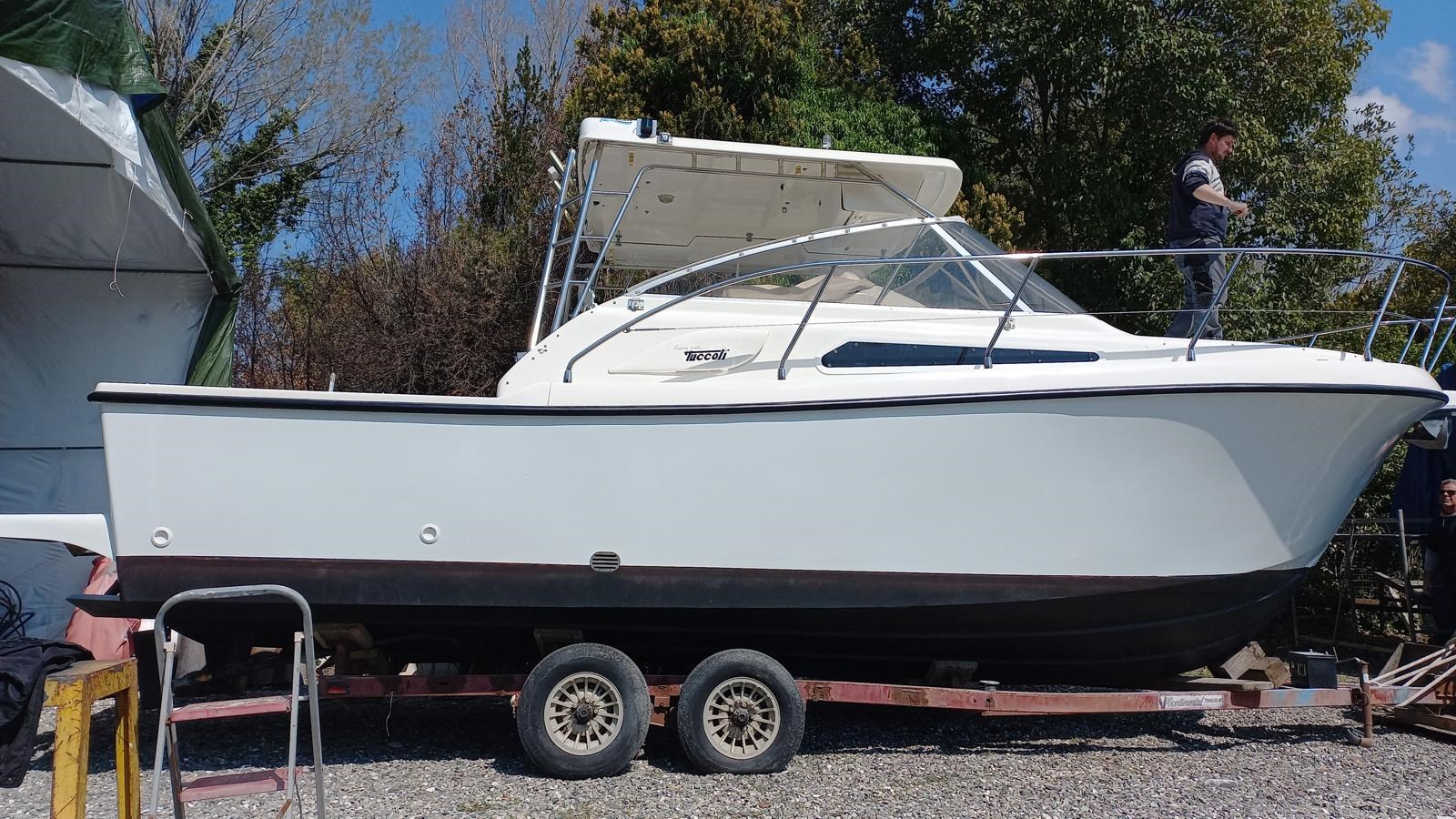 Tuccoli: the fisherman Made in Italy. A shipyard with 70 years of history, it reinterprets the fisherman, transforming its concept in the name of versatility. Designed to satisfy even professional fishermen, Tuccoli boats are now built as pleasure yachts, where nothing is left to chance: habitability, comfort, attention to detail, pure made in Italy. Ohana, looks like new, visible in Liguria, is delivered ready at the buoy for a new great exciting season of fishing and small cruise. Ohana is agile in handling and light in handling. Easy rider or fishing machine is a concentrate of content. The hull makes it agile when sailing, with a top speed of up to 32 knots, and stable at anchor. The stern platform is suitable for both fishermen and boaters, with the opening on the mirror convenient for embarking the most voluminous prey, but also for pleasure. Below deck, a cabin in the bow and a dinette with a table for four people. Kitchen and toilet room with shower complete the interior. All in just 9.13 meters overall. The advantages of a boat in a boat that does not require registration. The propulsion is entrusted to two Yanmar TD of 240 hp each. To be seen. Expertise available.
